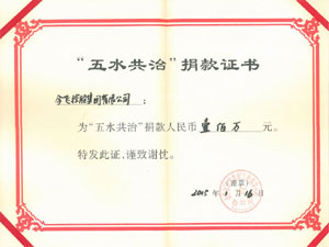 “五水共治”捐款证书