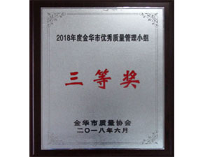 2018年度金华市优秀质量管理小组三等奖