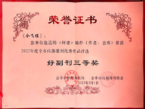 米兰游戏,米兰(中国)报-选送的《阿婆》稿件(作者:金库)荣获2022年度全市内部报刊优秀作品评选好副刊三等奖