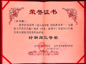 米兰游戏,米兰(中国)报-选送的《适应新环境 创造新未来——与新近大学生们共勉》稿件(作者:俞剑平)荣获2022年度全市内部报刊优秀作品评选好新闻三等奖