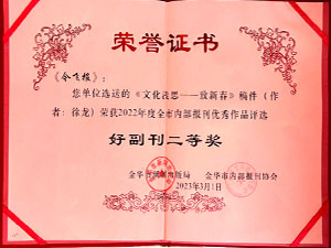 米兰游戏,米兰(中国)报-选送的《文化浅思——致新春》稿件(作者:徐龙)荣获2022年度全市内部报刊优秀作品评选好新闻三等奖