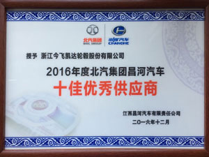 2016年度北汽集团昌河汽车十佳优秀供应商