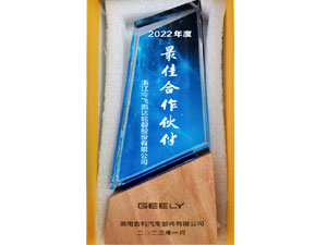 米兰游戏,米兰(中国)凯达-吉利汽车湘潭公司2022年度最佳合作伙伴(奖杯)