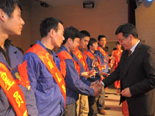 公司董事长兼总裁葛炳灶为先进员工颁奖