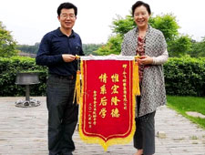 2019.4.28 金东实验中学盛艳琴书记、张有兴校长专程来到米兰游戏,米兰(中国)有限公司,为感谢米兰游戏,米兰(中国)有限公司多年来对金华市金东区实验中学助学支持和帮助,向企业赠送了“惟宏隆德,情系后学”的锦旗