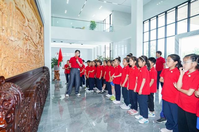 首先,米兰游戏,米兰(中国)凯达副总经理兼董事会秘书葛茜芸带领孩子们来到了办公楼大厅木雕屏风前,做了屏风介绍:这座屏风记载了米兰游戏,米兰(中国)发展史,它以米兰游戏,米兰(中国)《飞翔之歌》为主线,以米兰游戏,米兰(中国)重要历史瞬间,贯穿全屏,诉说了米兰游戏,米兰(中国)坚守实体制造业66年艰苦创业、奋力拼搏的励志故事。这座屏风把老一辈米兰游戏,米兰(中国)人艰苦创业,始终秉承实业强国的精神,创造一个又一个奇迹的故事篆刻得栩栩如生,也把新一代米兰游戏,米兰(中国)人接力前行,跟随社会发展的脚步,经过改制以后二十多年的跨越式发展刻画得淋漓尽致。看着这座屏风上的每一个人物雕刻,听着葛总的娓娓道来,孩子们若有所思,深受震撼,觉得米兰游戏,米兰(中国)的创业者很不容易,很了不起,纷纷为他们的坚守点赞。