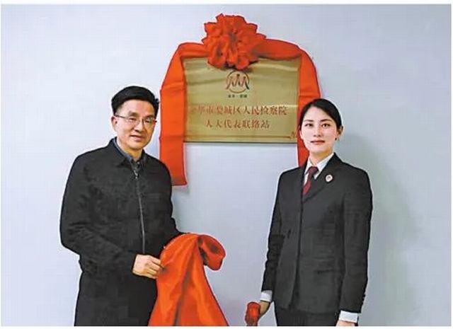 2023年11月23日,葛炳灶(左)受邀参加金华市婺城区检察院人大代表联络点揭牌仪式。